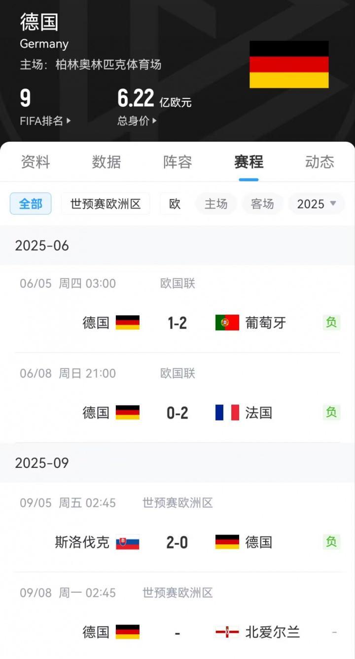 世预赛欧洲区小组赛,德国0-2不敌斯洛伐克遭到开门黑,他们下一轮将面对北爱尔兰队。
