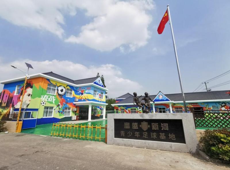 此外,借助国家乡村振兴战略、崇明打造 “足球区” 的东风,新河镇联手富盛经济开发区打出 “足球牌”,为井亭村的升级打上鲜明体育特色。原村委会建筑华丽变身,成为集住宿、餐饮、参观、研学、培训为一体的富盛新河戎灏青少年足球基地,基地有 35 个住宿房间、近百张床位,在训练或赛事期间能接待球员、家属,或在日常进行团建培训。富盛新河戎灏青少年足球基地、富盛足球场,成为整个崇明足球小镇的核心资源。